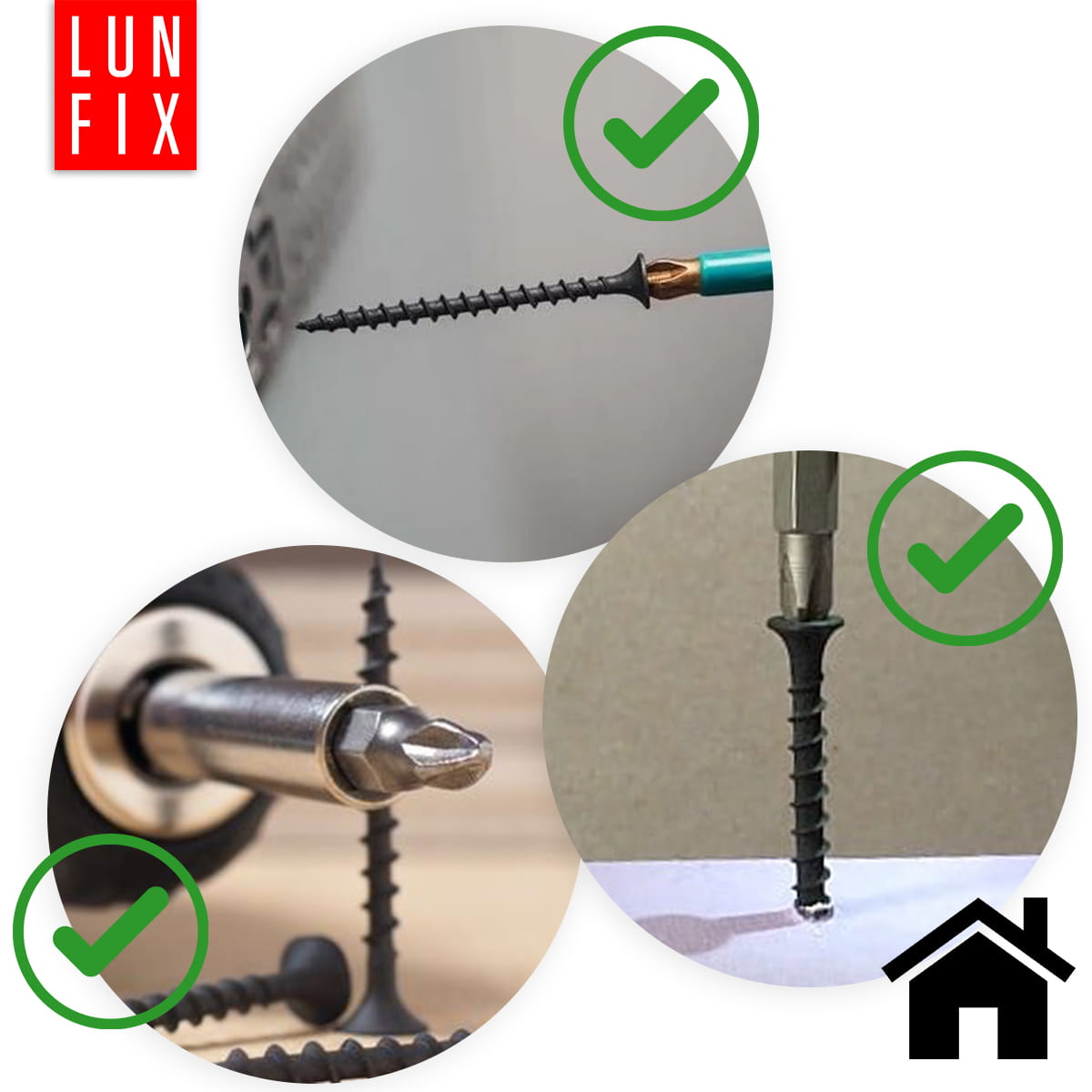 Wkręty fosfatowe Lun Fix mają nowoczesny kształt ze stożkową główką zwiększającą docisk. Dzięki ostrym początkom ułatwiają przebicie się przez profil aluminiowy przy montażu ścian z karton-gipsu. Przy ich zastosowaniu wybudujesz trwałą i mocną konstrukcję.