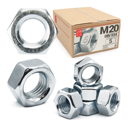 Nakrętka sześciokątna M20 DIN 934 klasa 6 ocynkowana 5szt.
