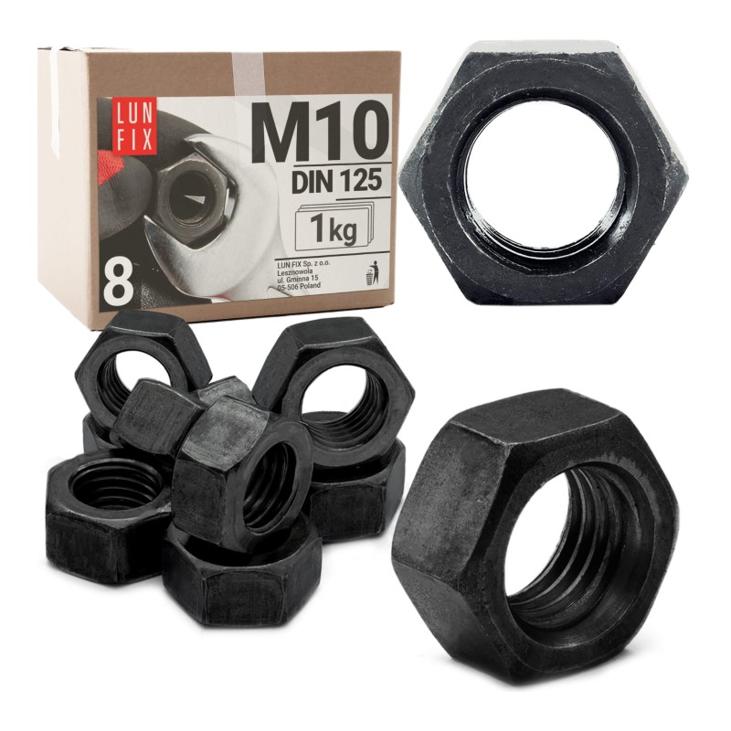 Nakrętka sześciokątna M10 czarny ocynk DIN934 klasa 8 1kg
