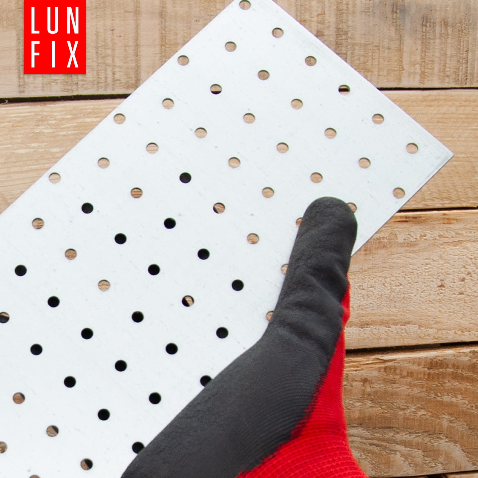 Płytki perforowane charakteryzują się wysoką wytrzymałością na obciążenia mechaniczne i są dostępne w różnych rozmiarach oraz kształtach, co pozwala na ich szerokie zastosowanie w różnych typach konstrukcji drewnianych. Dzięki perforacjom, montaż przy użyciu gwoździ czy wkrętów jest szybki i łatwy, co czyni je bardzo praktycznym elementem w budownictwie, ciesielstwie czy meblarstwie. Płytki Lun Fix: