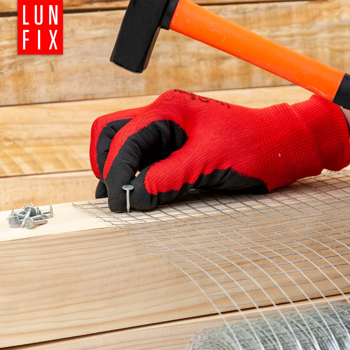 Siatkę można mocować za pomocą skobli, zszywek tapicerskich lub śrub z podkładkami – w zależności od podłoża.