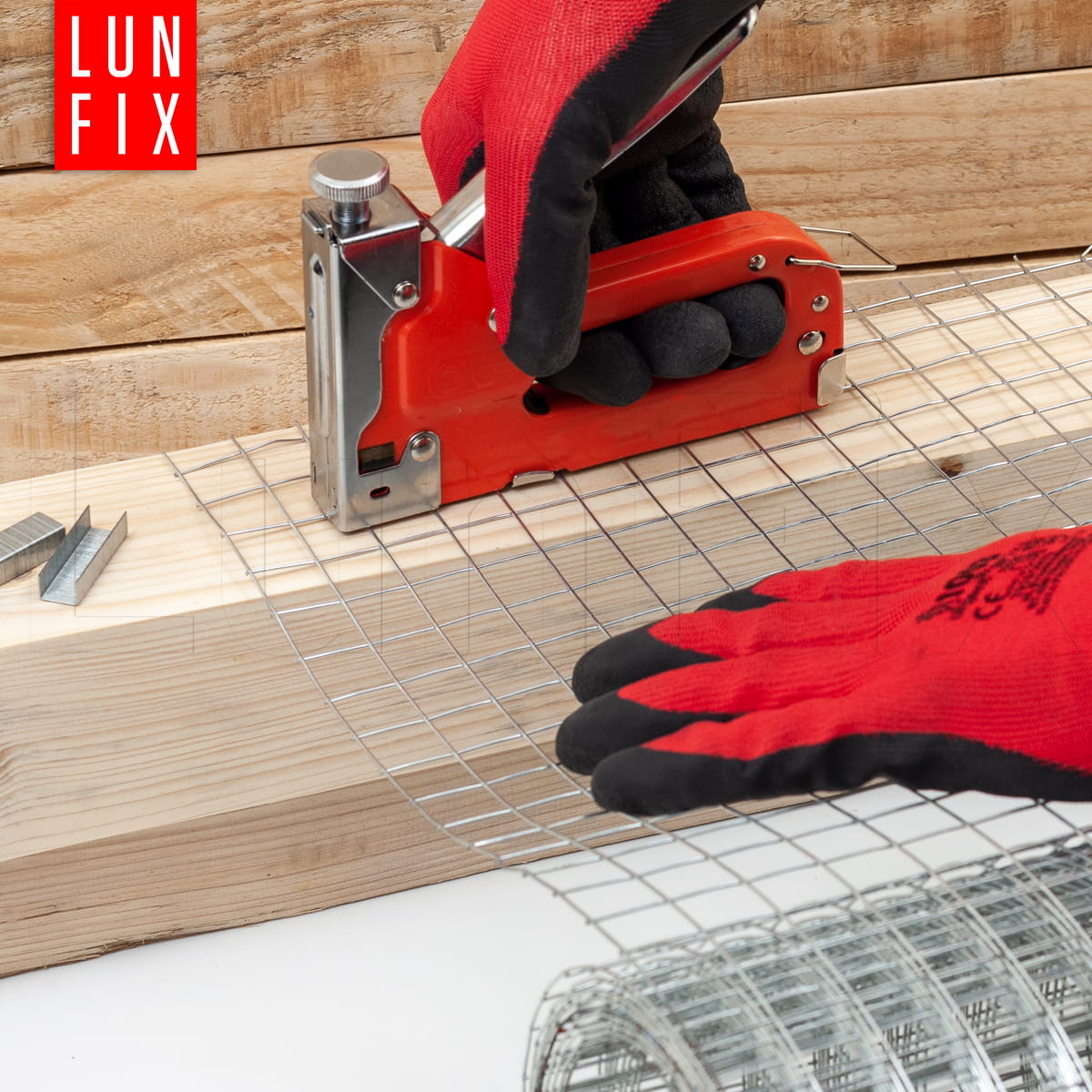 Siatkę można montować do słupków, ram lub konstrukcji drewnianych/metalowych za pomocą obejm, zszywek lub drutu wiązałkowego.