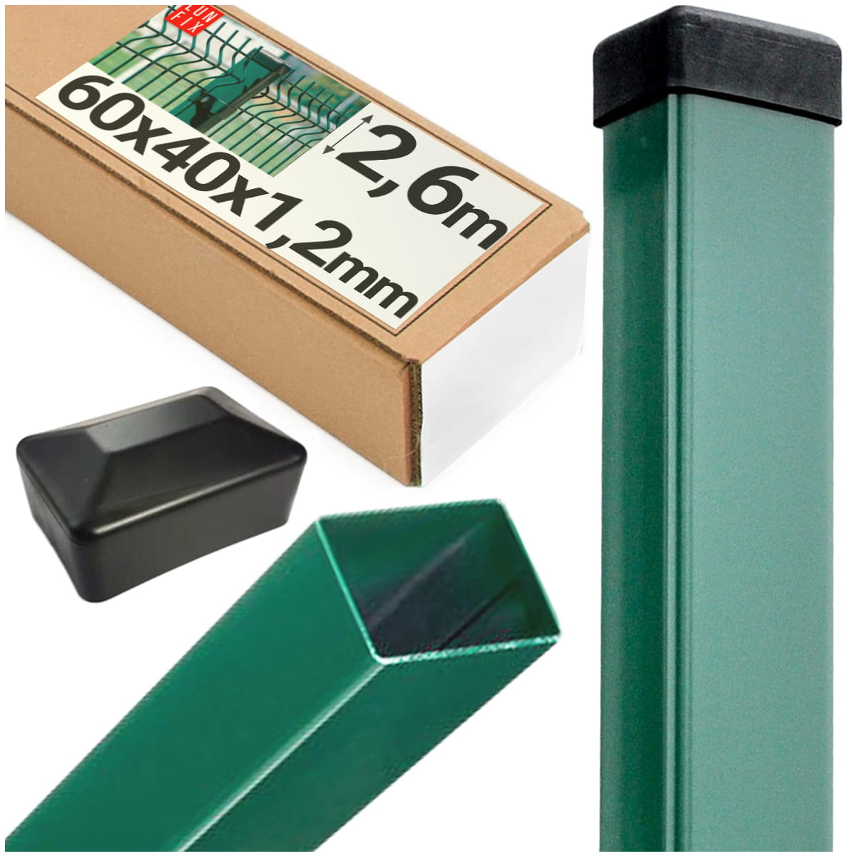 Słupek ogrodzeniowy 60x40 LUNBERG 60x40x2600 1,5mm grubości, zielony 260cm 2,6m