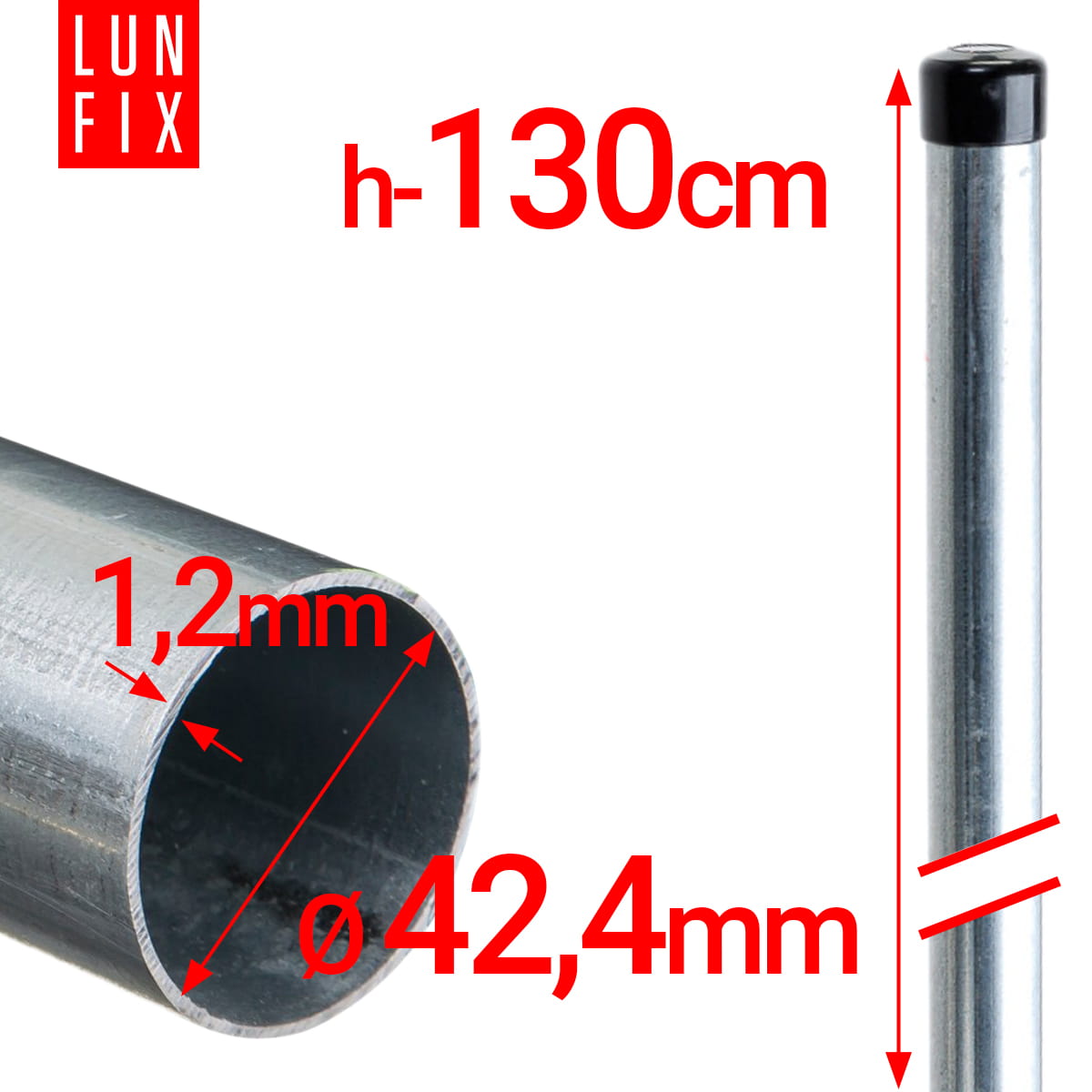 Słupek okrągły ogrodzeniowy ocynkowany fi 42,4mm 1,3m