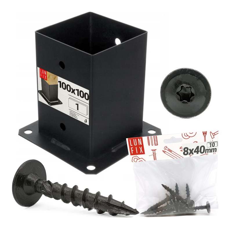 Zestaw podstawa słupa przykręcana czarna 10x10 z wkrętami