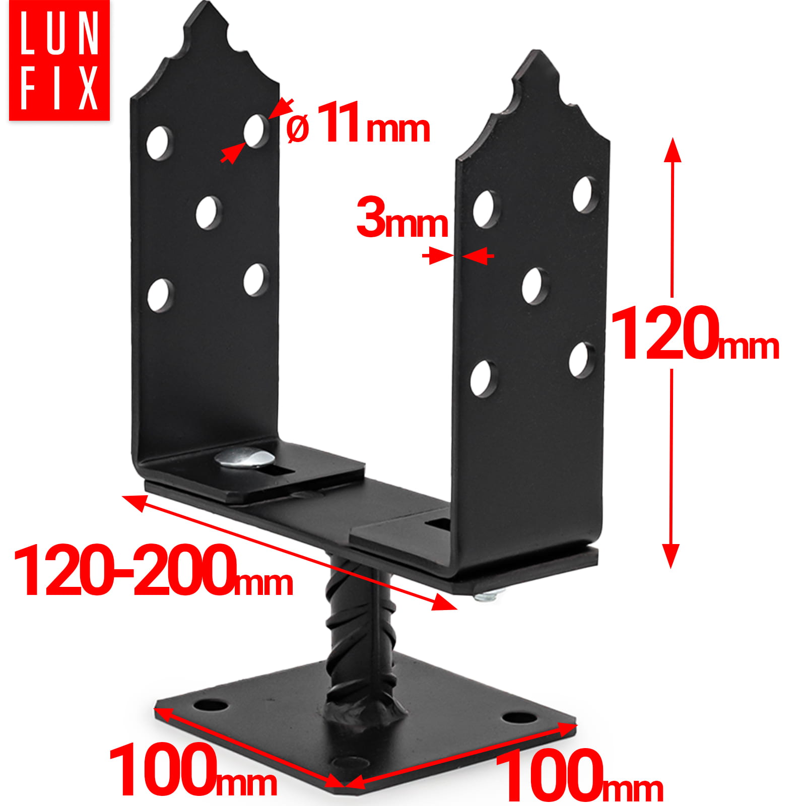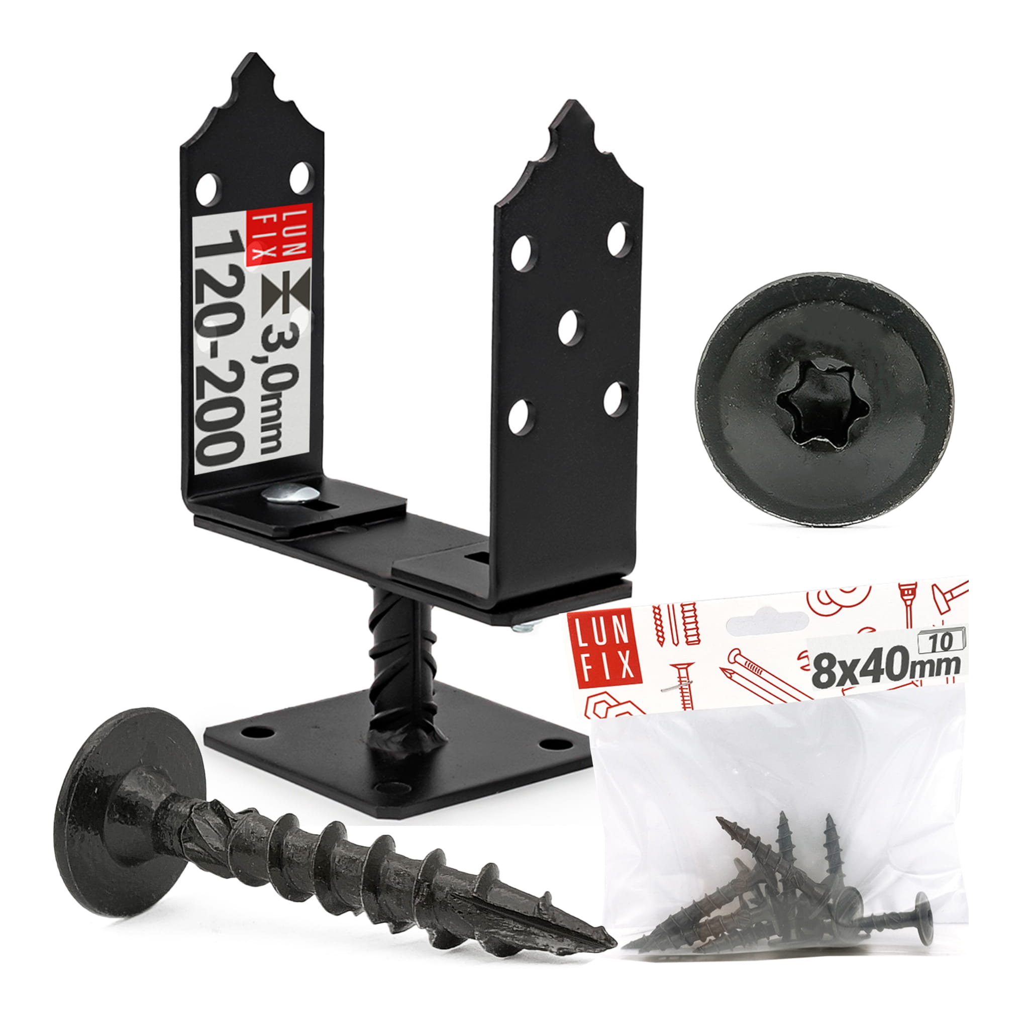 Zestaw podstawa słupa regulowana przykręcana 120-200 mm z wkrętami
