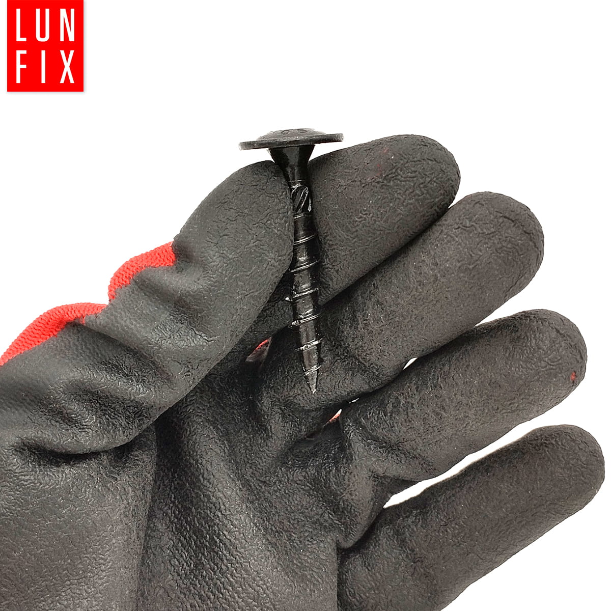 Praktyczny zestaw montażowy czarna podstawa słupa wraz z wkrętami. Sprawdź szczegóły!